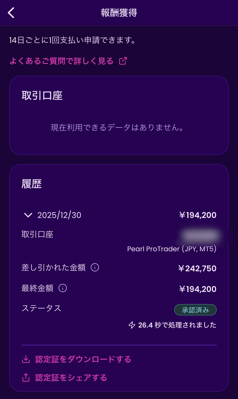 評価プログラムをクリアしていない場合、会社資金でのトレードができないため出金もできません。